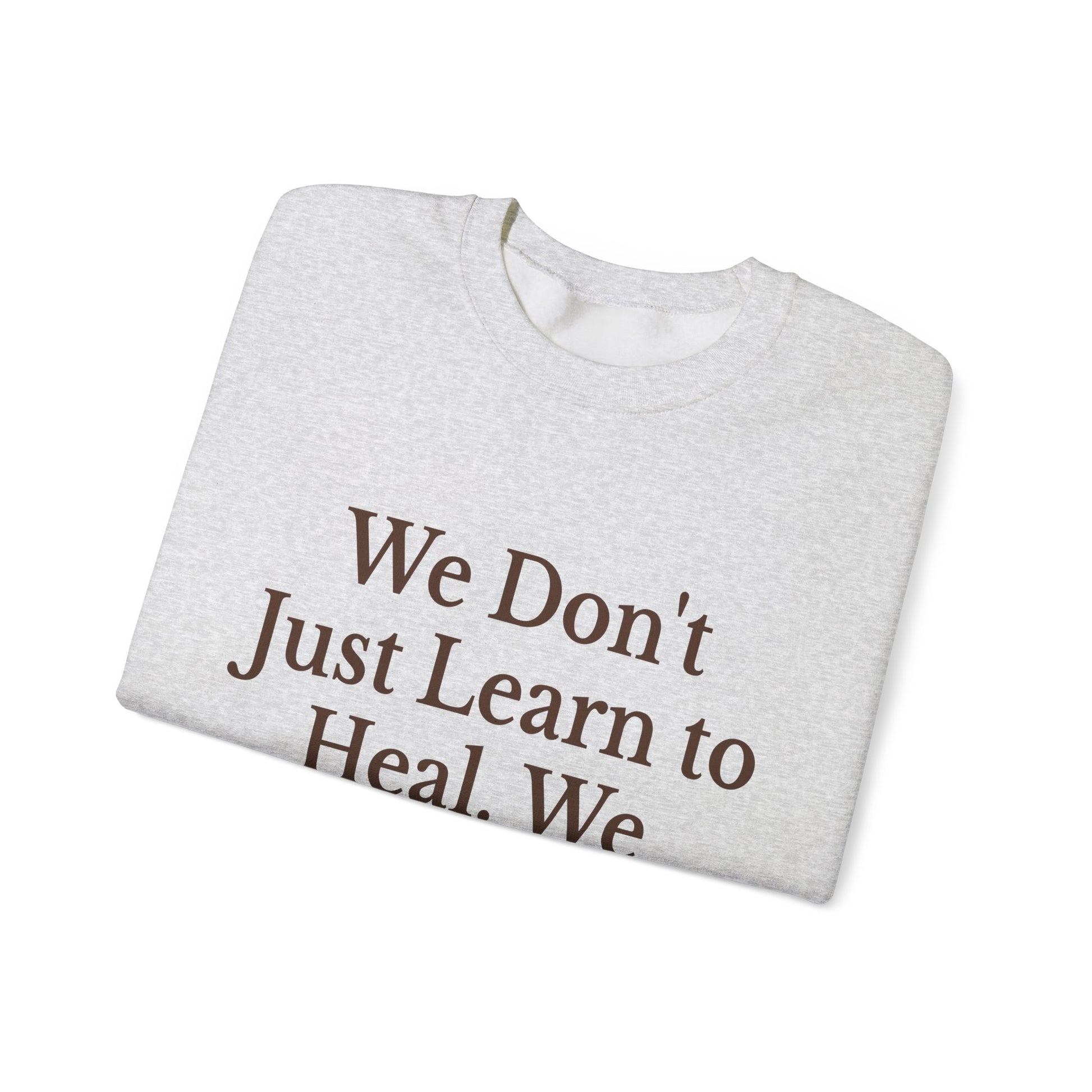 This unisex heavy blend crewneck sweatshirt exudes comfort and warmth, making it the perfect casual piece for chilly days. With its clean-cut style and classic fit, it effortlessly transitions from lounging at home to stylish outings. The motivational message "We Don't Just Learn to Heal. We Rise to Lead" serves as a daily reminder of resilience and empowerment, resonating deeply with individuals committed to personal growth or community leadership. Ideal for gifting during the holidays, special occasions, or as a thoughtful surprise for a friend embarking on a new journey, this sweatshirt embodies encouragement and support. Perfect for any adult looking to embrace a cozy yet inspiring wardrobe staple.